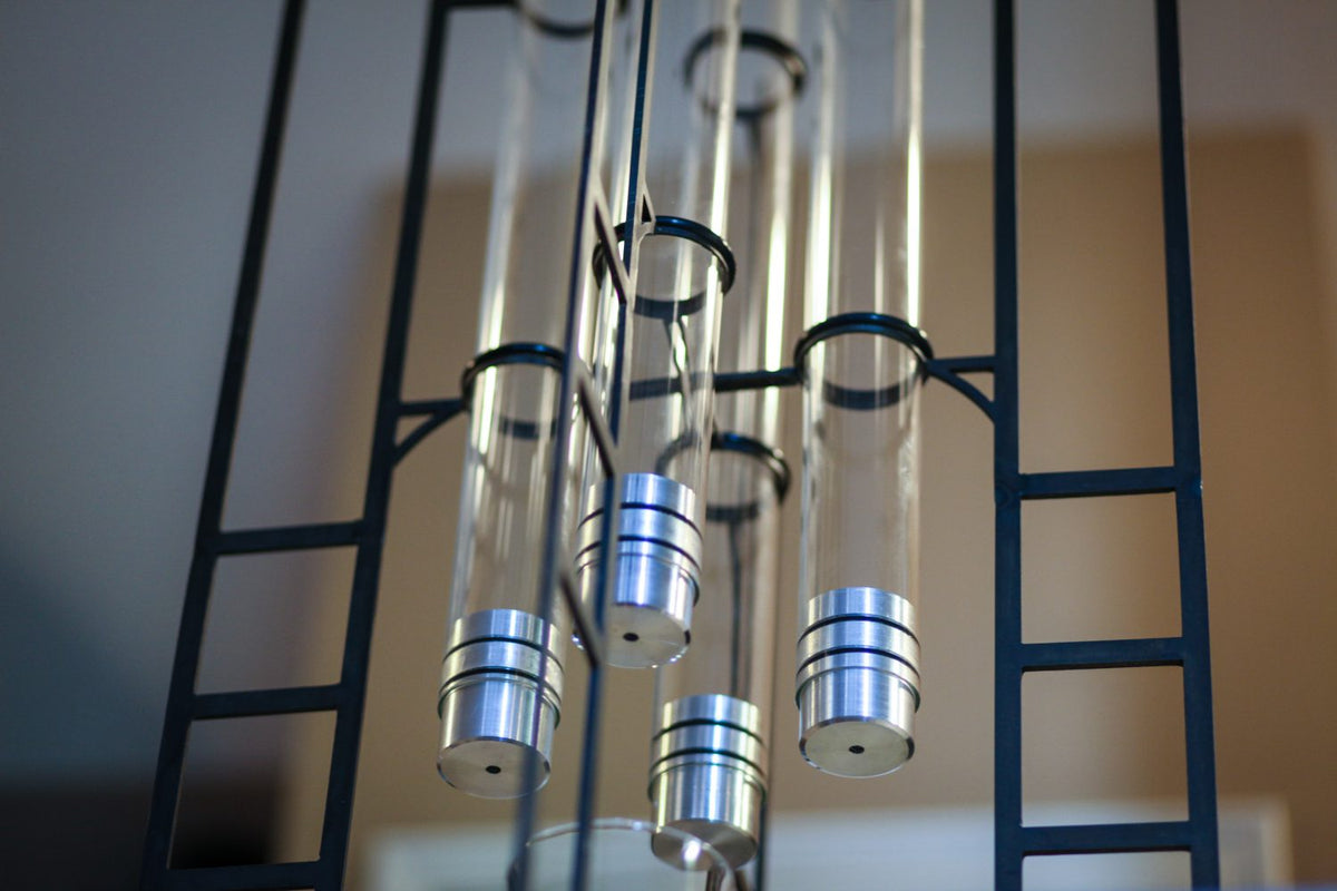 **Specifications:** - Capacity: Up to 2 gallons per batch - Tubes: 4 × 5-foot Pyrex glass - Height: 7 feet (assembled) - Lead time: 2 weeks - Made in Michigan, USA
